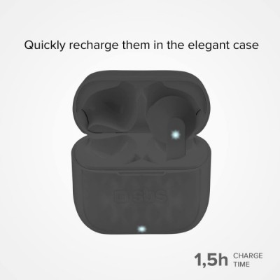 SBS TWS Air Free 무선 헤드폰 다기능 터치 컨트롤, 충전 스테이션, 최대 3.5시간 연속 이상적인 음악 통화, 이어버드 포함, 블랙