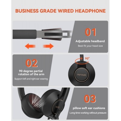 PC용 마이크가 장착된 Nuroum HP11-D 헤드셋, 편안한 유선 이중 귀(스테레오) 헤드셋, 3.5mm 잭을 통해 데스크탑/Mac에 연결, 통화/회의/음악 스테레오+3.5mm용 Zoom/Teams와 호환