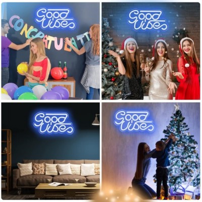 Homagical 네온사인 Good Vibes(13" X 7"), 아크릴 보드가 있는 LED 네온사인, 벽 장식 네온 워드 라이트 USB 전원 공급 for Teen Bedroom/New Year/Bar/Party/Children Gift(Blue)