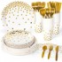 DECORLIFE 350PCS Gold Plates and Napkins Party Supplies for 50 Guests, White and Gold Paper Plates, Cups Included for Engagement, Baby Shower, Wedding, Birthday, Housewarming