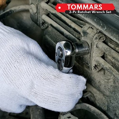 TOMMARS Stubby Ratchet Set, 1/4, 3/8, 1/2 Drive Ratchet Handle Wrench 72-Tooth Quick-Release Reversible