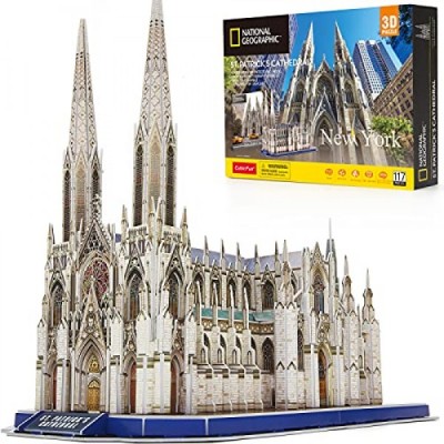CubicFun 3D Puzzles for Adults National Geographic St. Patrick's Cathedral Model Kits, New York Architecture Puzzles for Adults Desk Building Toys for Kids Ages 8+, 117 Pieces with Booklet Xmas Gifts