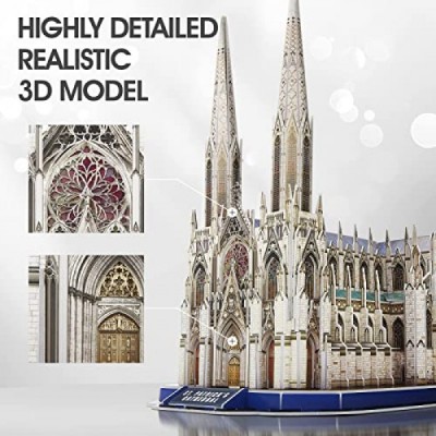 성인을 위한 CubicFun 3D 퍼즐 내셔널 지오그래픽 성 패트릭 대성당 모델 키트, 뉴욕 성인을 위한 건축 퍼즐 8세 이상 어린이를 위한 책상 조립 장난감, 소책자 포함 크리