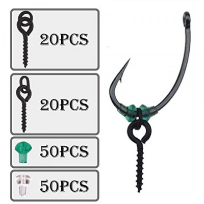FYSL 140 조각 낚시 후크 세트 40 조각 스레드 Boilie 미끼 나사 100 조각 낚시 후크 중지 낚시 후크 세트, 원형 타원형 미끼 지그 후크 낚시 태클 액세서리