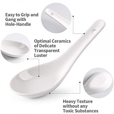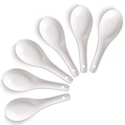HAPPY KIT 5.3" Asian Soup Spoons Set of 6-White Ceramic Dessert Spoons Ramen Spoons Proper for Corelle Pho Miso Wonton Ramen Dumpling Macaron Dishwasher & Oven Safe