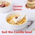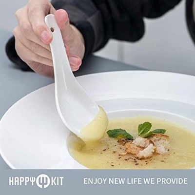 HAPPY KIT 5.3" 아시아 수프 스푼 6개 세트 화이트 세라믹 디저트 스푼 코렐 포 된장 완탕 라면 만두 마카롱 식기세척기 및 오븐 안전에 적합한 라면 스푼