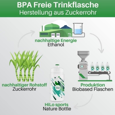 HiLo sports 2er Set Fahrrad Trinkflasche 500ml | Zuckerrohr Radflasche| dichte Sportflasche | Fahrradflasche Rad Flasche | Trinkflasche Fahrrad (weiß, grün)