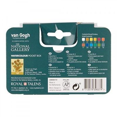 The National Gallery Van Gogh Watercolor Paint Set, Plastic Pocketbox, 12-Half Pan General Selection, Sunflowers