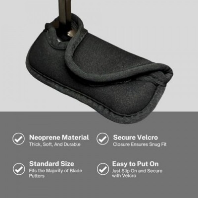 Black Golf Putter Headcover Neoprene Club Head Cover Perfect for Blade Putters Fits Right Handed Putters Clubs