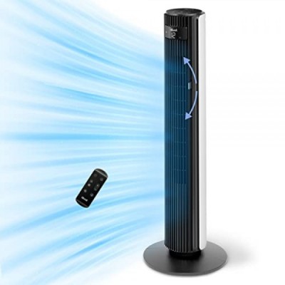 침실용 Levoit 타워 팬, 7.5m/s 강력한 23W 에너지 절약 팬, 원격 제어 기능이 있는 25dB 매우 조용한 기둥 팬, 12가지 속도, 4가지 모드, 흰색