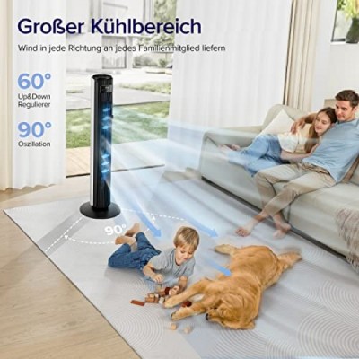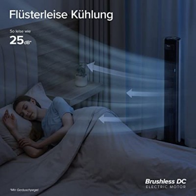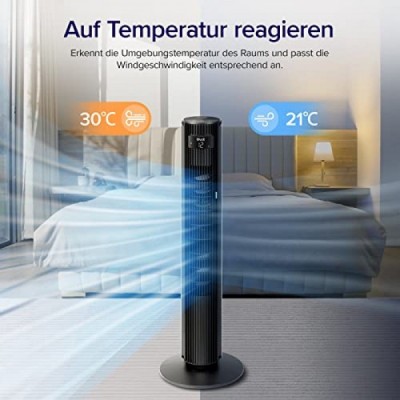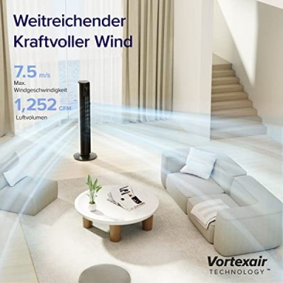Levoit Tower Fan for Bedroom, 7.5 m/s Strong 23 W Energy Saving Fan, 25 dB Very Quiet Column Fan with Remote Control, 12 Speeds, 4 Modes, White