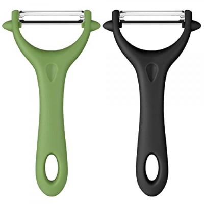 AUAUY 2PCS Potato Peeler, Y-Shaped Swivel Vegetable Peeler, Fruit Peeler for Kitchen, Non-Slip Grip Peeler, Ergonomic Handle Sharp Blade Stainless Steel Peeler(Green, Black)