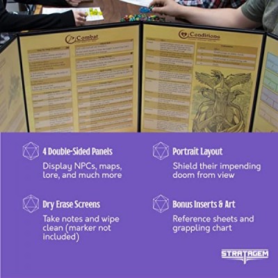 Stratagem The Master's Tome 4패널 커스터마이징 가능한 GM 화면(무료 삽입 포함) – Dry Erase, Dungeon & Game Master Access for Tabletop RPG Campaigns (Black) : Toys & Games