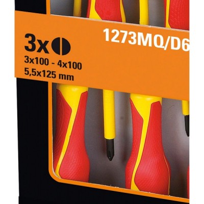 Beta 1273 MQ/D6-6 스크루드라이버 세트, 스크루드라이버 세트, (공구 세트 6종, 그립 포함, 3개의 일자형 및 Phillips, 내구성이 뛰어난 공구, 무게: 478g), 노란색/빨간색, 1273085