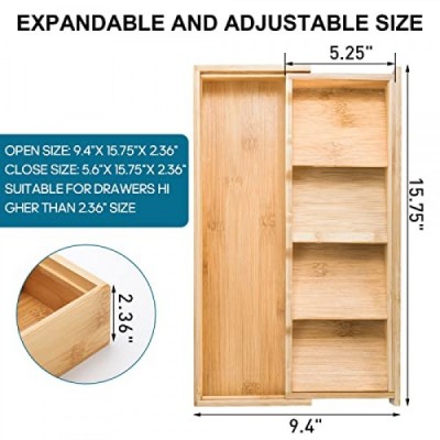 Fasmov Silverware Organizer Storage Tray, Bamboo Compact Utensil Organizer, Cutlery Expandable Organizer for Kitchen Drawer Holding Flatware Spoons Forks