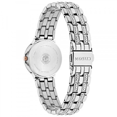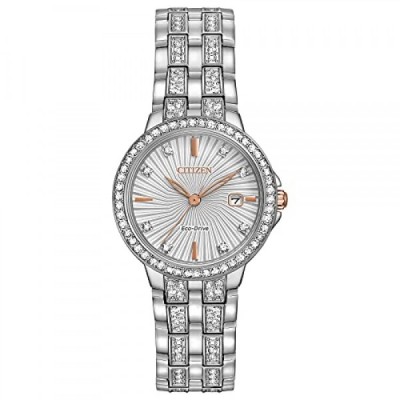 Citizen 여성용 실루엣 크리스탈 에코드라이브 시계, 바늘 3개 날짜, 스테인리스 스틸