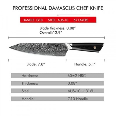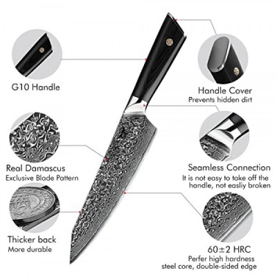 ONEONTA Chef Knife - Japanese Chef Knife 8 Inch - Damascus Kitchen Knife Professional - Japanese AUS-10V Steel, G10 Handle, 67 Layers