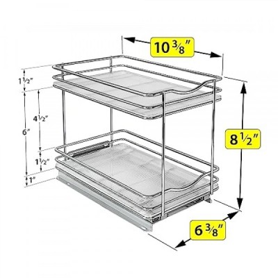 LYNK PROFESSIONAL® 캐비닛용 풀아웃 스파이스 랙 정리함 - 6-1/4인치 폭 - 슬라이드 아웃 랙 - 슬라이딩 스파이스 정리함 선반 - 2단, 크롬