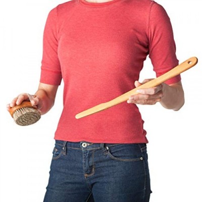 탈착식 스팀 너도밤나무 손잡이가 있는 Redecker Wellfit 목욕 브러시, 100% 독일산, 혼합 말총 및 식물 섬유 강모, 길이 17-1/2인치