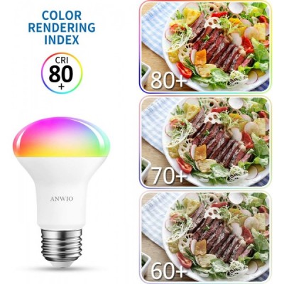 Alexa e27 스마트 전구, ANWIO R63 WiFi 디 밍이 가능한 스마트 반사판 LED 전구, E27 RGB Led 전구, 8.5W 교체 60Watt, 806LM, Alexa 및 Google 홈과 호환 가능, TUYA, 220-240V (4pcs) R63 Wif Colorful