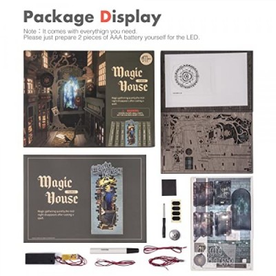 Rowood Book Nook 3D Wooden Puzzle, DIY Bookshelf Insert Decor Building Set Model Kit with LED Light for Adults Kids- Magic House
