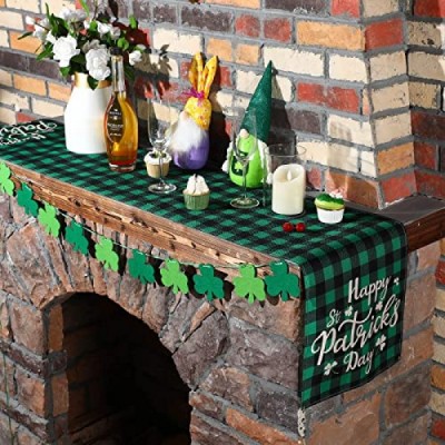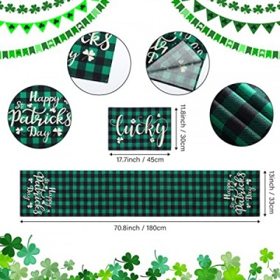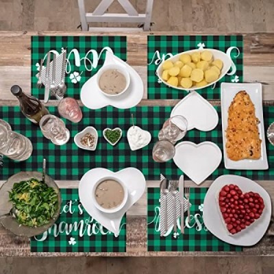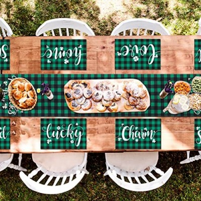 7 Pieces St. Patrick's Day Table Runner Placemats, Shamrock Happy Holiday Decorations for Dining Table, Vintage Rustic Farmhouse Lucky Table Mat Set for Irish Party (Retro Style)