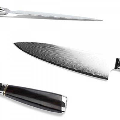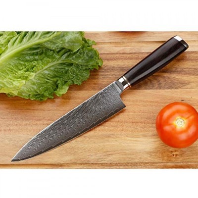 Sunlong Chef's Knife 8 inch Gyuto Japanese Damascus Natural Leadwood Handle with Walnut Wood Sheath Flannel Knife Bag