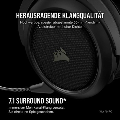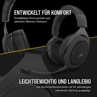 Corsair HS70 Pro Wireless Gaming Headset(7.1 Surround Sound, Ultraniedrige Latenz, 12 Meter Reichweite, Federleichtes Design, Abnehmbares Rauschunterdrückung-Mikrofon, für PC und PS4) carbon , Schwarz