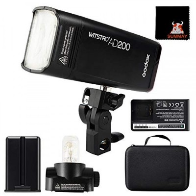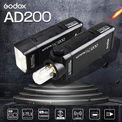 GODOX AD200 Pocket Flash Speedlite 200Ws 1/8000s HSS Cordless Monolight Kit, 500 Full Power Pocket Flash, 0.01-2.1s Recycling, Bare Bulb/Speedlite Flash Head, 2900mAh Rechargeable Battery (AD200)
