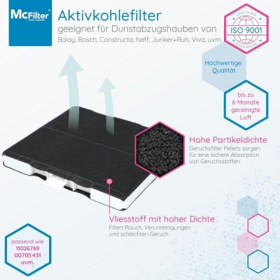 McFilter | 2x Aktivkohlefilter für Dunstabzugshaube geeignet für Kohlefilter Bosch 00705431, 11026769, DHZ5326, Siemens LZ53250, LZ53251, LZ53650, Neff Z5101X1, Z5101X5, Z5105X5 Filter für Abzugshaube