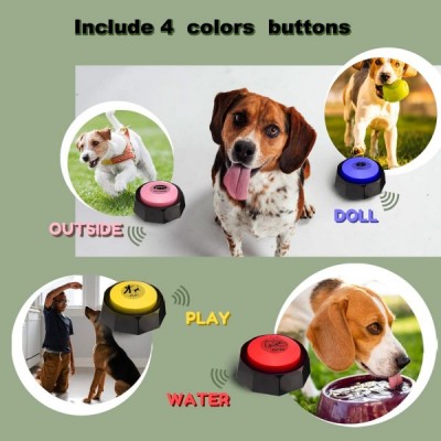 WHATOOK Hundetasten Kommunikation für Cat Dog,Buzzer mit Aufnahmefunktion,4 Stück Aufnehmbare Trainingssummer Pad für Hunde Kinder Drücken Sie Interaktion, Spiele, um zu kommunizieren und zu sprechen