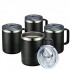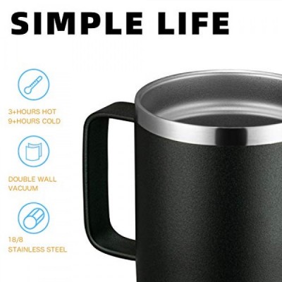 손잡이가 있는 MEWAY 12온스 커피 머그 4팩 벌크, 슬라이딩 뚜껑이 있는 스테인레스 스틸 절연 여행용 텀블러, 따뜻한 & 차가운 음료 차용 이중벽 진공 캠핑 컵(검은색, 4