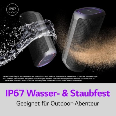 LG XBOOM Go DXG5, tragbarer Bluetooth-Lautsprecher (20 Watt, Google Assistant, Siri, Beleuchtung), Schwarz