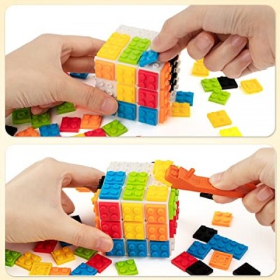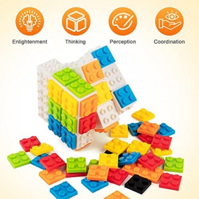 D-FantiX Building Brick Blocks 3x3x3 Speed Cube Toy, Build-On Brick 3D Magic Cube, Handheld Brain Teaser Puzzles Gift Ideas, Puzzle Building Cube Game for Kids Adults (Included Brick Separator)