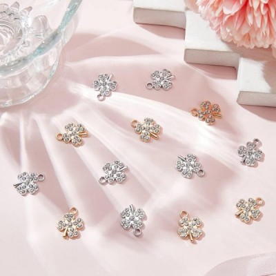 DICOSMETIC 60pcs 2 색 네 잎 클로버 행운의 매력 토끼풀 행운의 매력 크리스탈 라인 석 펜던트 합금 펜던트 매력 세인트 패트릭 테마 매력 DIY 쥬얼리 만들기 Clover-2pcs-60pcs