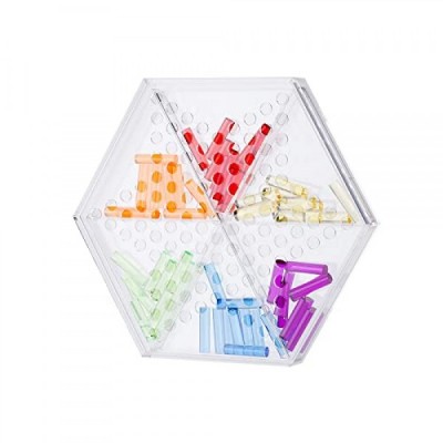 Acrylic Chinese Checkers Halma Board Game Set 12 inches with Triangle Storage Box and 60 Colored 1.6 inch Small cylindrical sticks Classic Strategy Family Board Game for Kids and Adults