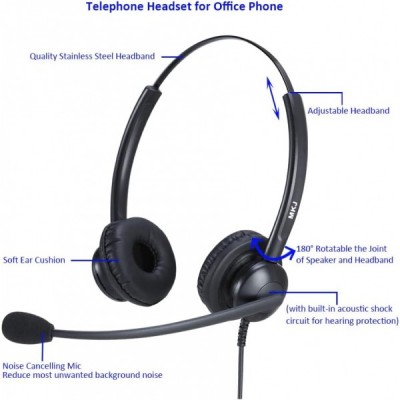 MKJ Cisco Headset mit Mikrofon Office kopfhörer für Cisco 6841 6851 6921 6945 6961 7821 7841 7861 7931G 7940G 7941G 7942G 7945 7960G 7962 7971G 7975G 8811 8841 8845 8851 886 8945 8961 9951 9971 Binaural MKJ-510DSQD002C