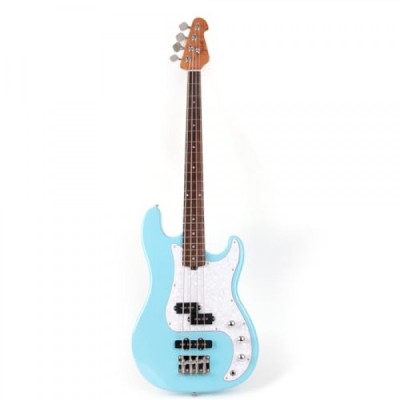 풀 사이즈 표준 일렉트릭 베이스 기타 4현 4현 오른손잡이용 참피나무 바디 구운 캐나다 메이플 넥 정품 로즈우드 프렛보드 지판 및 긱 백(블루)