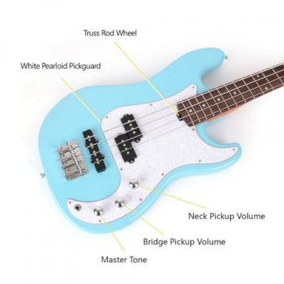 Full Size Standard Electric Bass Guitar Four 4 String Right Hand Handed Basswood Body Roasted Canadian Maple Neck Genuine Rosewood Fretboard Fingerboard with Gig Bag (Blue)