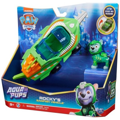 PAW PATROL Aqua Pups Rocky 컨버터블 Sawfish 차량, Collectible 액션 피규어 Kids Toy