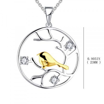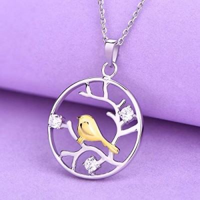 JO WISDOM Women's Necklace Tree of Life Bird 925 Silver Necklace Pendant with 3A Cubic Zirconia Jewellery for Women, Cubic Zirconia