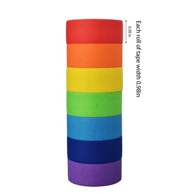 SIMON&ISAAC 레인보우 컬러 마스킹 테이프 컬러 와시 테이프 접착제 DIY 공예 종이 장식 테이프 공예 테이프 7 롤 × 13m × 25mm 어린이용 교사 실험실 라벨링 화가 화가 플래