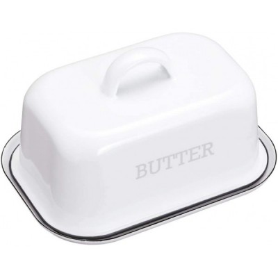 KitchenCraft 3 x Living Nostalgia Vintage-Style Enamel Butter Dish with Lid – White/Grey