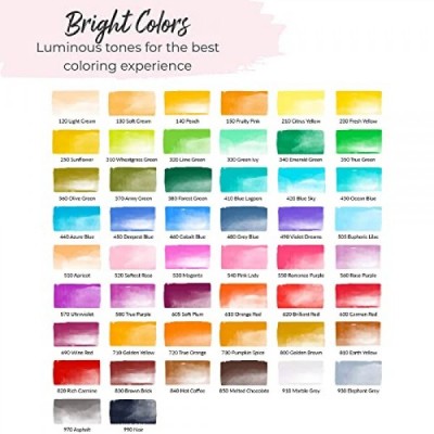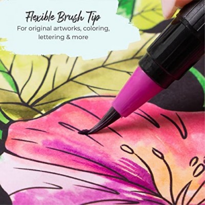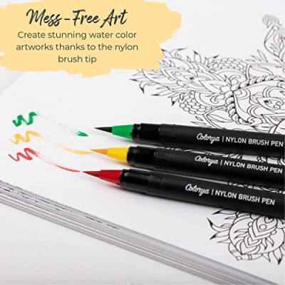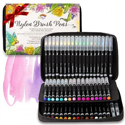 Colorya Watercolor Brush Pens - 50 Real Nylon Tip Art Pens & 2 Water Tank Brushes - Watercolor Pens for Adult Coloring Books, Watercolor Painting, Calligraphy, and Drawing