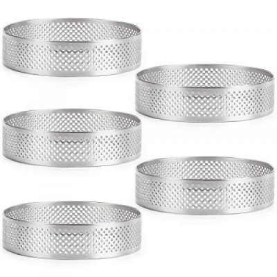 FANGSUN 타르트 링, 베이킹용 천공 타트 링, 스테인레스 스틸 붙지 않는 라운드 케이크 링, 프랑스 디저트용 금속 과자 금형, 작은 과일 타르트 크러스트, 원형 타르트, 3
