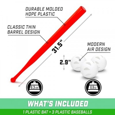 GoSports LotBall AIR 뒷마당 야구 방망이 및 공 세트 - 어린이를 위한 플라스틱 야구 게임