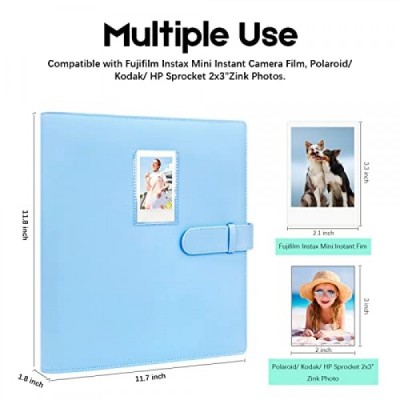 640 Pockets Photo Album for Fujifilm Instax Mini Camera, Photo Album for Polaroid, Leather Cover, Photo Album for Instax Mini 12 11 9 40 90 8 7 Evo LiPlay Instant Camera, 2x3 Photo Album(Blue)