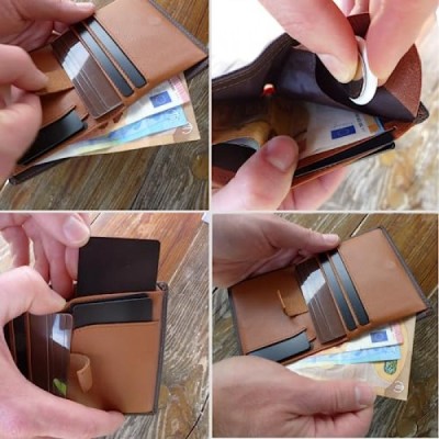 Will Fire® Classic Slim Wallet Leather Wallet for up to 10 Cards, Banknotes, Airtag and Coin Compartment, RFID Protection, coffee, slim wallet
