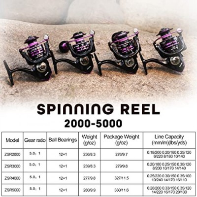 Sougayilang Fishing Reel, Lightweight 12+1 Ball Bearings 5.0:1 Gear Ratio Ultra Smooth Purple Spinning Reel for Freshwater