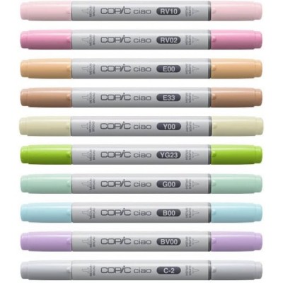 COPIC Ciao Marker My First Copic 스타터 세트, Copic Ciao 마커 10개, Copic 멀티라이너 2개, 연습용 선화 3개, 고급 본드지 A6 8장, 설명서